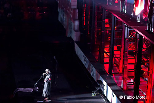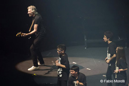 Impossibile – penso - che lo spettacolo possa tenere lo stesso tenore per tutta la sua durata; e vengo subito smentita. Le emozioni sono in crescendo, come i personaggi sul palco: il severo e dispotico professore-martello disegnato da Gerald Scarfe si materializza in versione marionetta di 90 metri alla destra del palco. Con movimenti fluidi e perfettamente ritagliati sull’animazione originale il pupazzo oversize sembra minacciare i musicisti finché il monderno coro di bambini freestyle di Another Brick in The Wall lo caccia dal palco.
